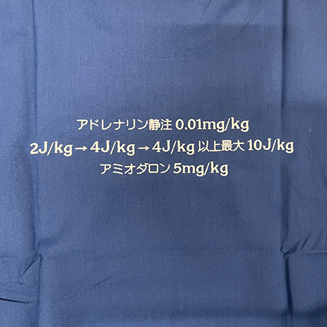 左袖には病院名を、そして背中にはご指定の文字を刺繍。 刺繍糸を「ホワイト」で統一することで、