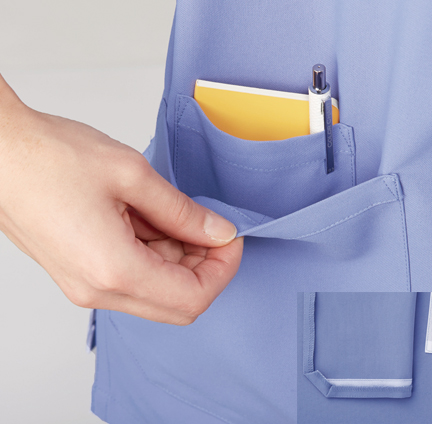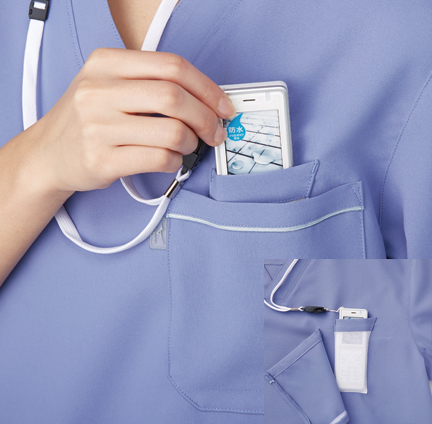 胸ポケットに物を入れていても、かがんだときに胸元が見えないようになっています。