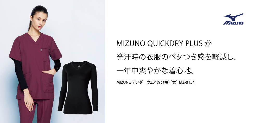 MIZUNO QUICKDRY PLUS が発汗時の衣服のベタつき感を軽減し、一年中爽やかな着心地。
