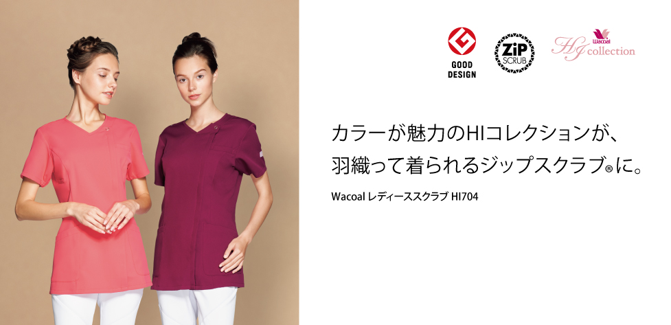 カラーが魅力のHIコレクションが、羽織って着られるジップスクラブ®に。
