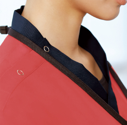 右肩は隠しスナップボタン開閉でスピーディな着脱を可能に。