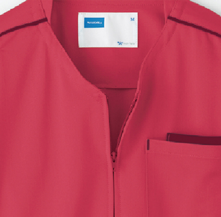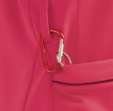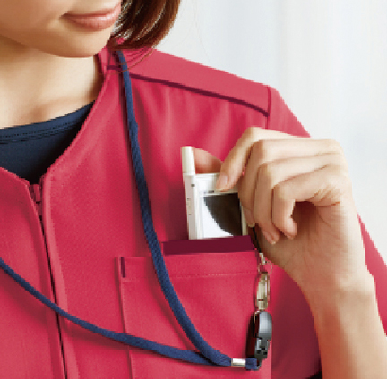 首にストラップが直接当たらない衿デザイン。胸ポケットはPHS収納に◎なダブル仕様。